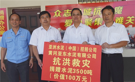黄冈亚东抗洪救灾捐赠水泥3500吨,价值100万元.