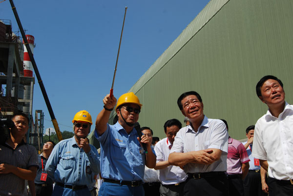 吴执行长详细介绍了亚泥(中国)及江西亚东的整体网络布局、生产经营概况、市场营销体系、顺畅物流系统与突出税收贡献等,也重点说明了江西亚东第五、六条生产线的新设计、新工艺、新技术、新设备,强调了亚泥(中国)在推动技术创新、落实环保节能等方面的先进经验。莫常务副省长饶有兴致的听取简报,对亚泥(中国)的先进技术、一流环保、创新策略、宏伟愿景给予高度肯定,更对江西亚东冒高温、战酷暑、赶施工、抢进度的火热扩建场面表示赞赏,并为江西沿江开发浪潮中涌现如此大企业、大项目感到震动、鼓舞和激励,他期望亚泥继续做好水泥业做大做强的领头羊,积极推动地区经济社会发展,促成千帆竞发的赶超态势,为实现工业经济又好又快发展做出更多贡献。