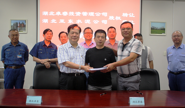 湖北亚东水泥与湖北卓睿投资管理公司,9月4日就湖北鑫龙源矿业公司股权转让一案正式签约。湖北鑫龙源矿业原由湖北卓睿投资管理公司100%控股,透过本次股权转让,湖北亚东水泥取得湖北鑫龙源矿业40%股权,成为湖北鑫龙源矿业另一重要股东。