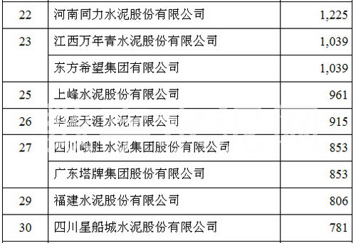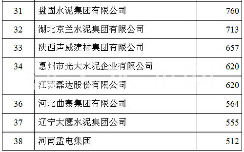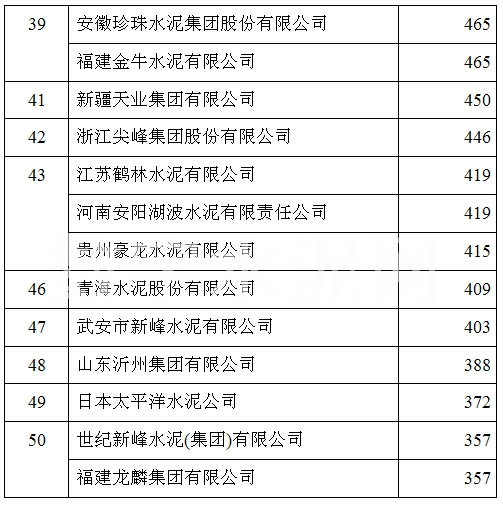 中国水泥协会公布2015年全国水泥熟料产能前50强企业排名